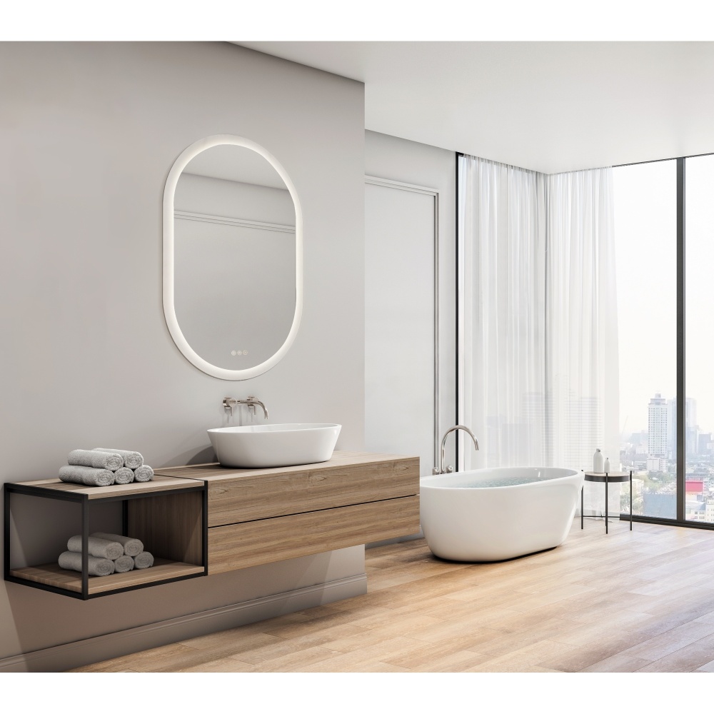 Eurofase mirrors are designed and built to UL/ETL standards for North America, with the highest level of quality and reliability in mind. The LED mirrors include a Touch activated switch integrated into the glass mirror. This switch is tastefully illuminated in warm white color allowing for subtle visibility. The Correlated Color Temperature (CCT) defines the color appearance of a white LED. The Eurofase mirror CCT depends on the light being classified as warm, neutral or cool within the settings. These mirrors are a perfect upgrade for a bathroom or an entryway.