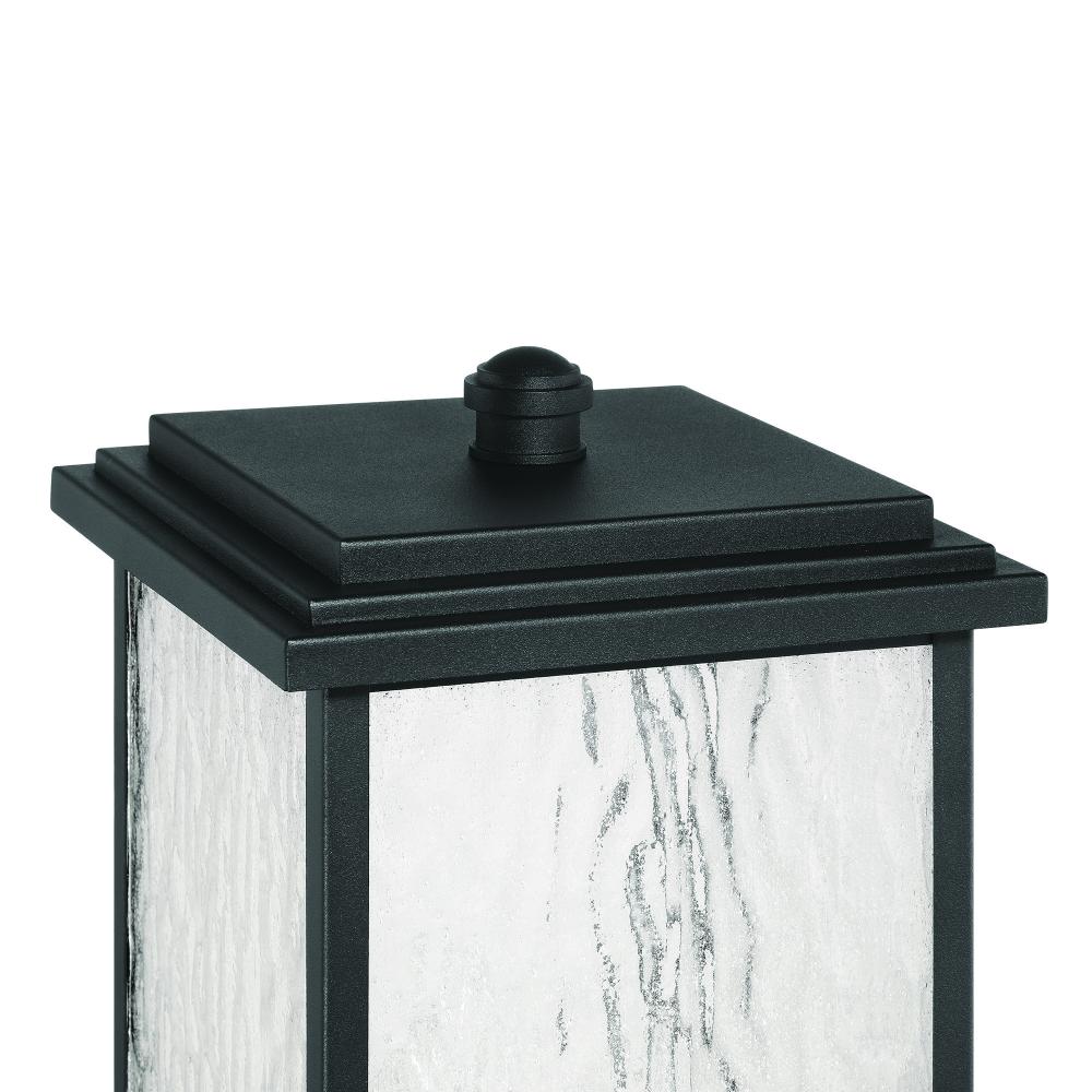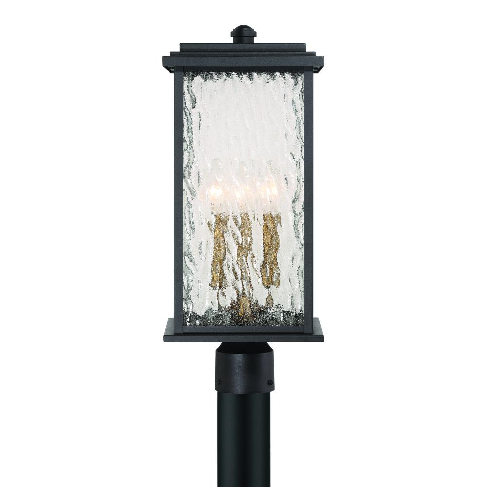 The “Estate” Collection outdoor post radiates classic allure, with its black metal frame offering a striking contrast to the mesmerizing water glass panels. Encased within, vintage brass candle covers and intricate metalwork glow warmly, evoking a sense of nostalgic charm. Perfect for enhancing any outdoor space, this sconce blends classic sophistication with modern durability.