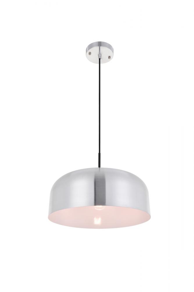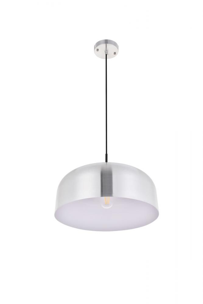 Cylinder shaped brushed nickel finish aluminum shade with white finish interior