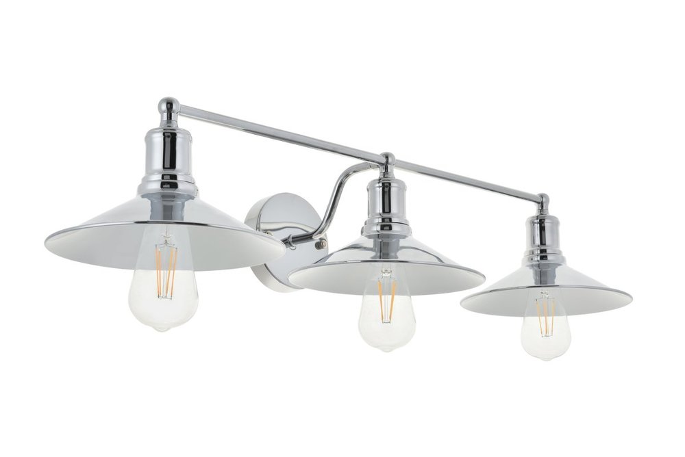 The lilting personality of the Etude wall lamp in a chrome finish will have you singing for days! Whether the crescent arm catches your attention or its classic lampshade that makes you speechless, this 3-light wall lamp will surely improve the style of any room in your home.