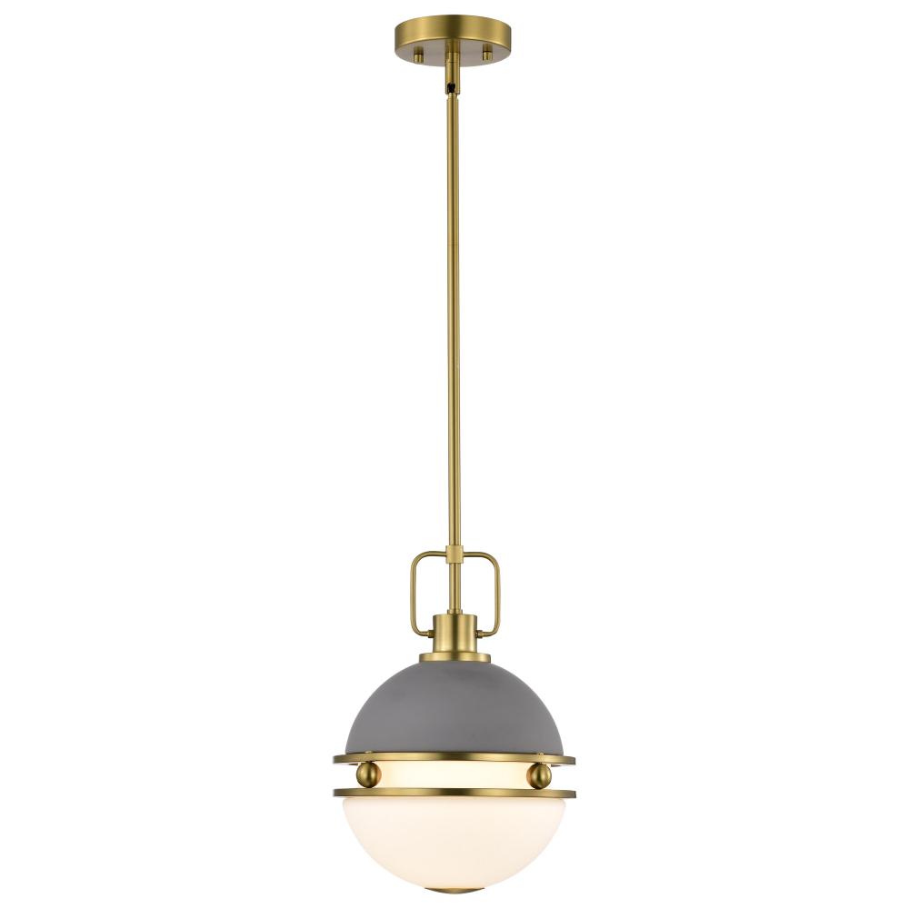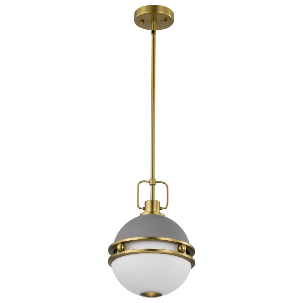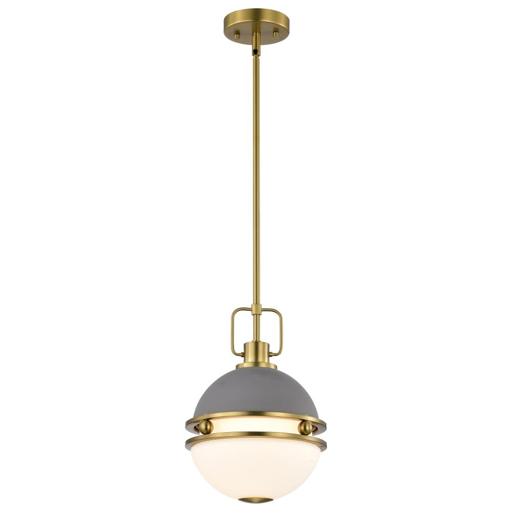 Everton 1 Light Pendant; 10 Inches; Matte Gray & Brass Finish; Etched Opal Glass