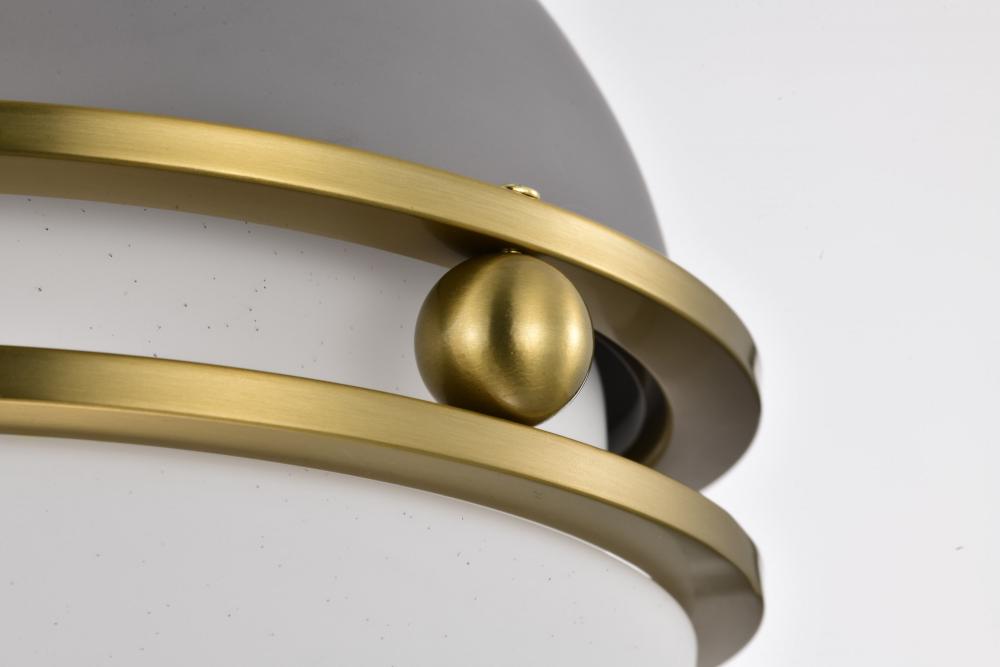 Modern illumination with beautiful, subtle details, elevates the Everton's group of pendants style to grand heights. With spherical, opal etched glass softly diffusing the light, creating a warm and inviting glow. Available in a rich brass finish with