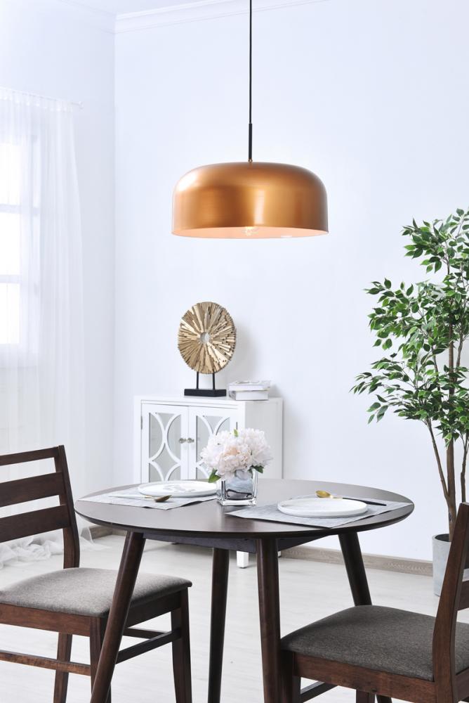 Contemporary satin gold finish pendant lamp with a cylinder shaped shade
