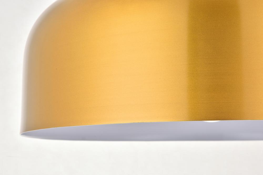 Cylinder shaped satin gold finish aluminum shade with white finish interior