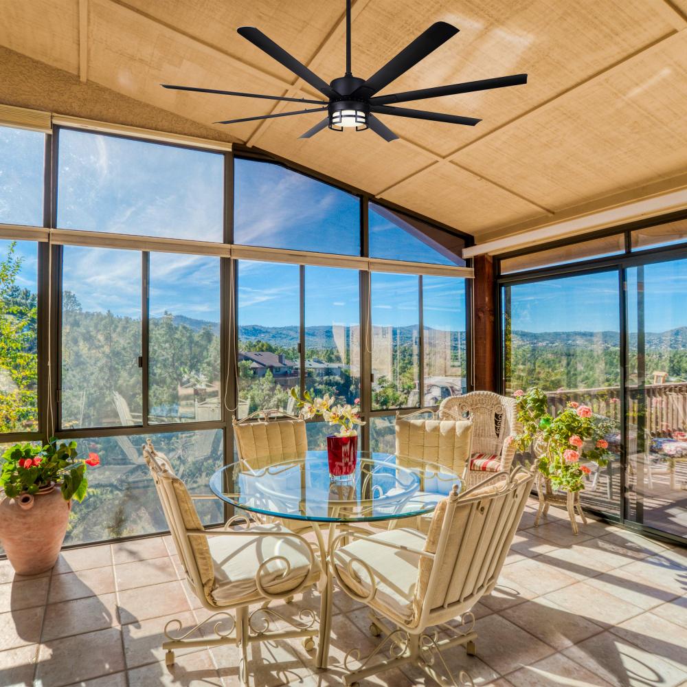 CFan 72inch, EZRA MBK, CP72EZR8BK-W, DC Motor, 8 Aluminum Blades, MBK Color Blade, Downrod Mount, 1x20W Integrated LED, 1000Lumen, 3000K,Remote Control Included, For Wet Location