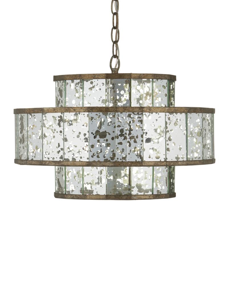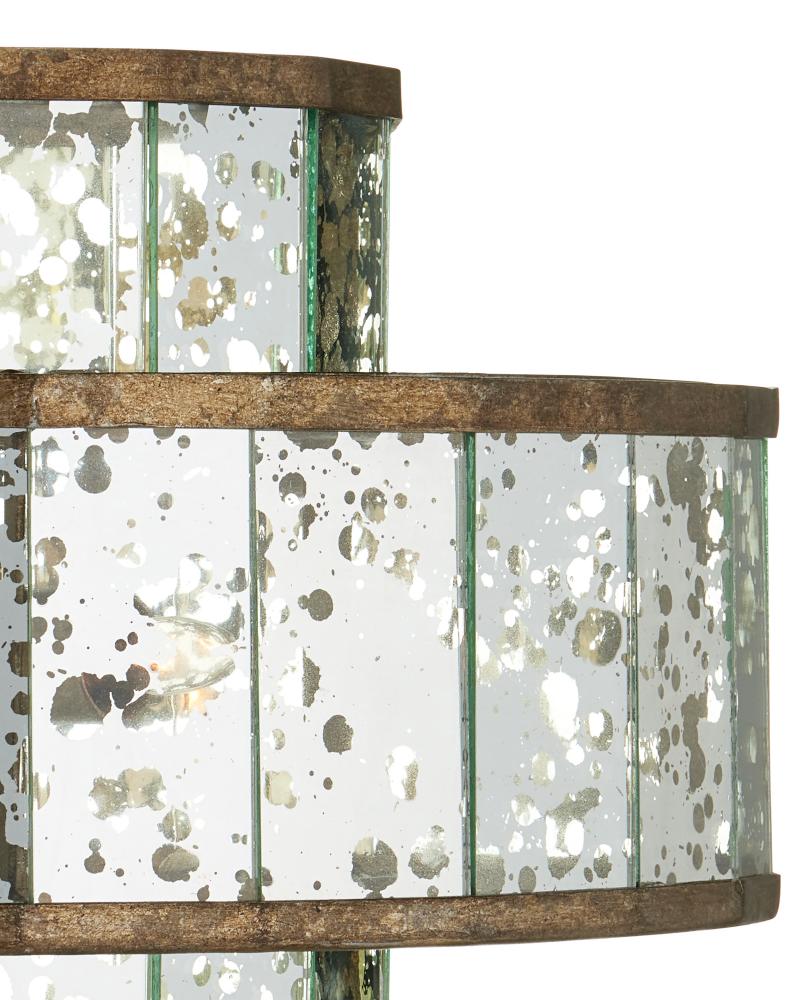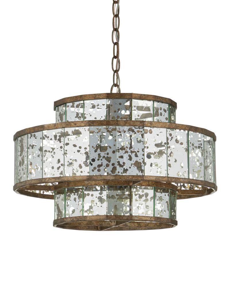 The Fantine Small Chandelier has shades made of Raj mirror that strikingly resemble mercury glass. The Pyrite bronze finish on the metal of this mirrored chandelier echoes the mottled tones in the glass to create synchronicity. The Fantine is also available in a large chandelier and a wall sconce. Adjustable from 20" to 87" with use of included chain/rod kit/cable. If your space calls for a longer drop, additional chain/rods/cable is available for purchase.