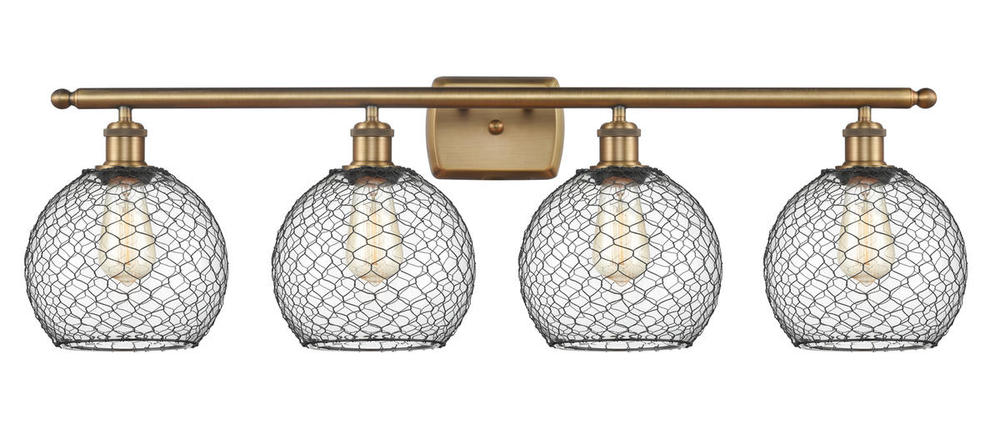 Farmhouse Chicken Wire - 4 Light - 38 inch - Brushed Brass - Clear Glass with Black Wire Shade - Bath Vanity Light