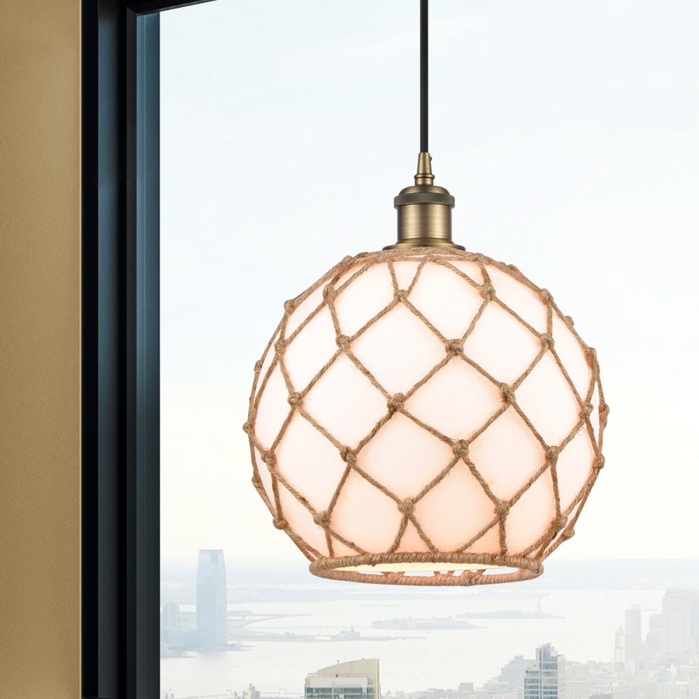 Matte White Large Farmhouse Glass with Brown Rope