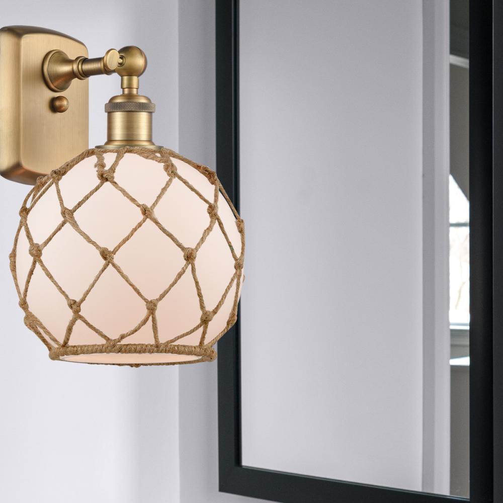White Farmhouse Glass with Brown Rope