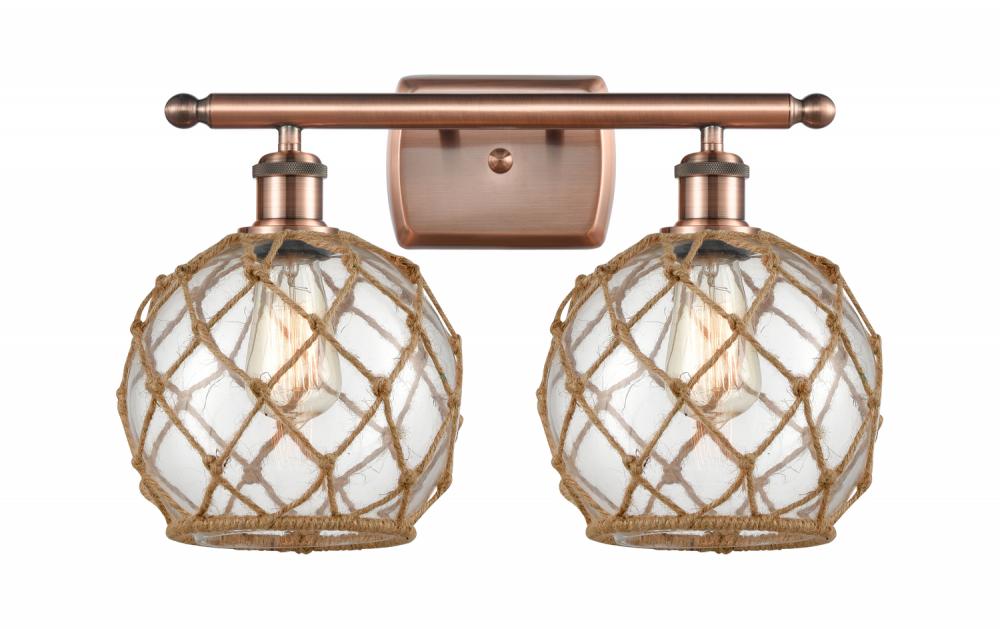 Farmhouse Rope - 2 Light - 18 inch - Antique Copper - Clear Glass with Brown Rope Shade - Bath Vanity Light