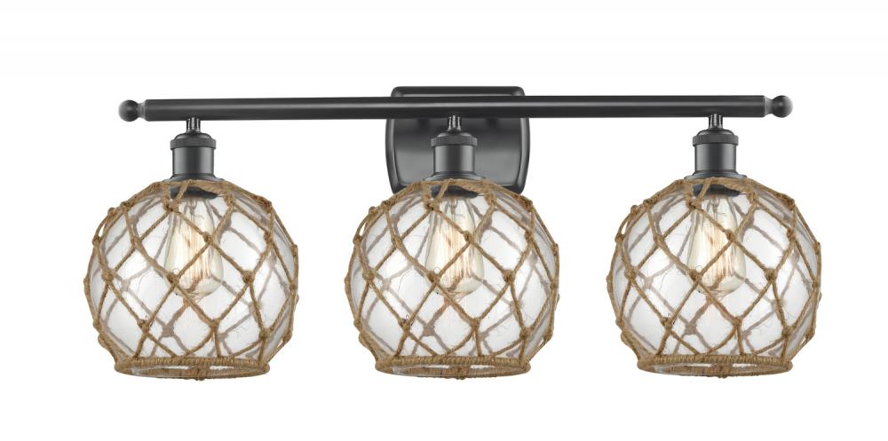 Farmhouse Rope - 3 Light - 28 inch - Matte Black - Clear Glass with Brown Rope Shade - Bath Vanity Light