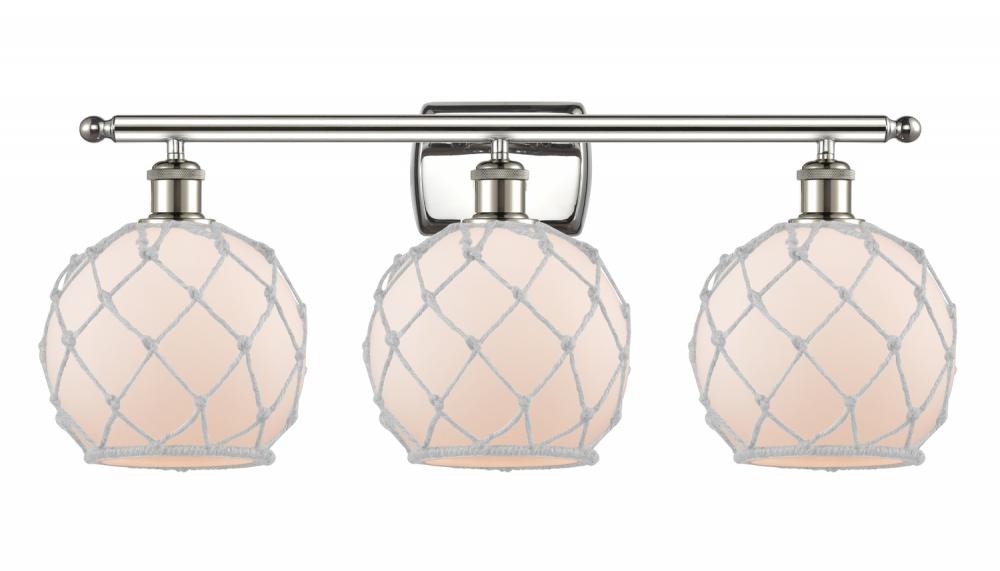 Farmhouse Rope - 3 Light - 28 inch - Polished Nickel - White Glass with White Rope Shade - Bath Vanity Light