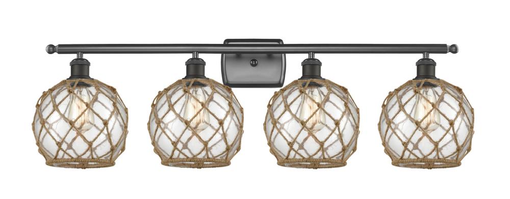 Farmhouse Rope - 4 Light - 38 inch - Oil Rubbed Bronze - Clear Glass with Brown Rope Shade - Bath Vanity Light