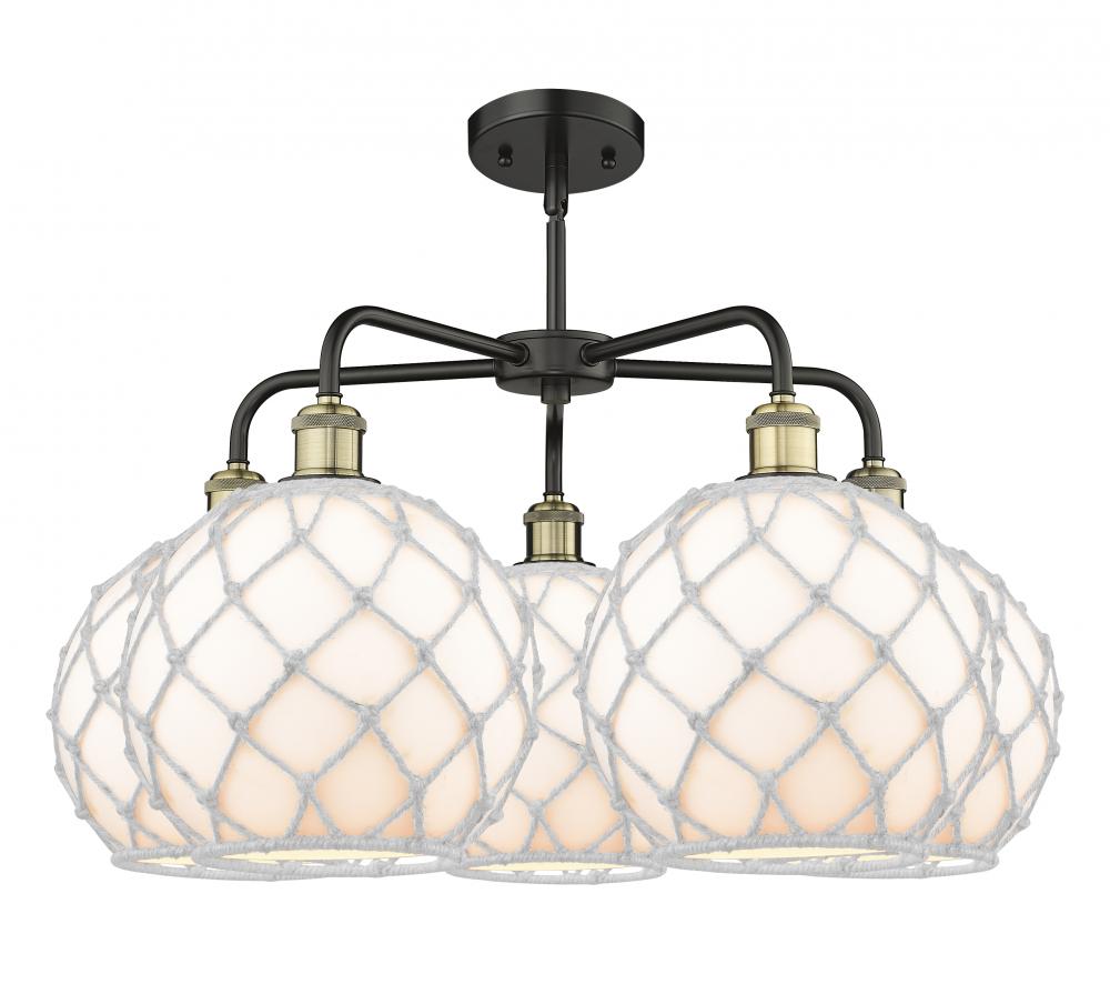 Farmhouse Rope - 5 Light - 29 inch - Black Antique Brass - White Glass with White Rope shade - Stem hung - Chandelier