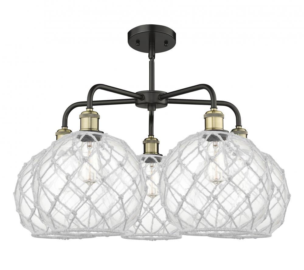 Farmhouse Rope - 5 Light - 29 inch - Black Antique Brass - Clear Glass with White Rope shade - Stem hung - Chandelier