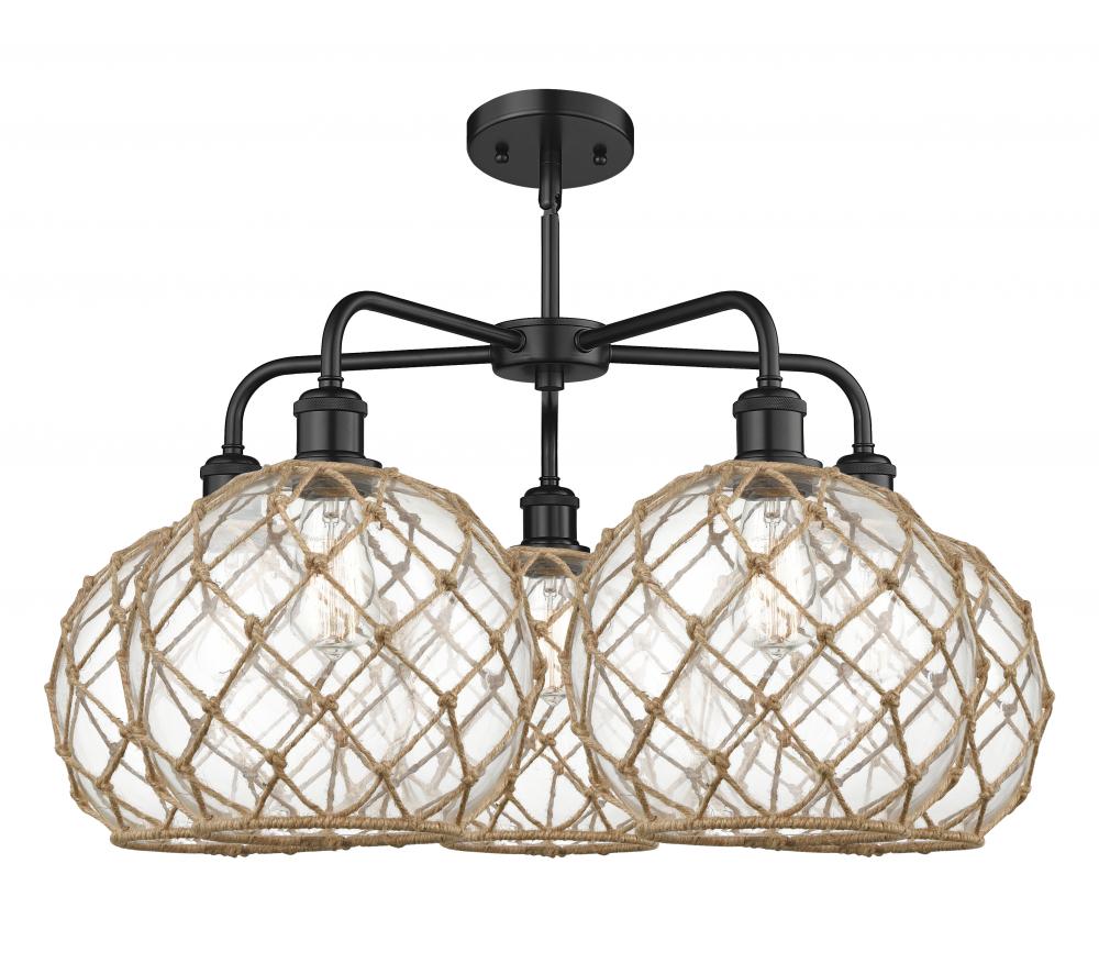 Farmhouse Rope - 5 Light - 29 inch - Matte Black - Stem hung - Chandelier