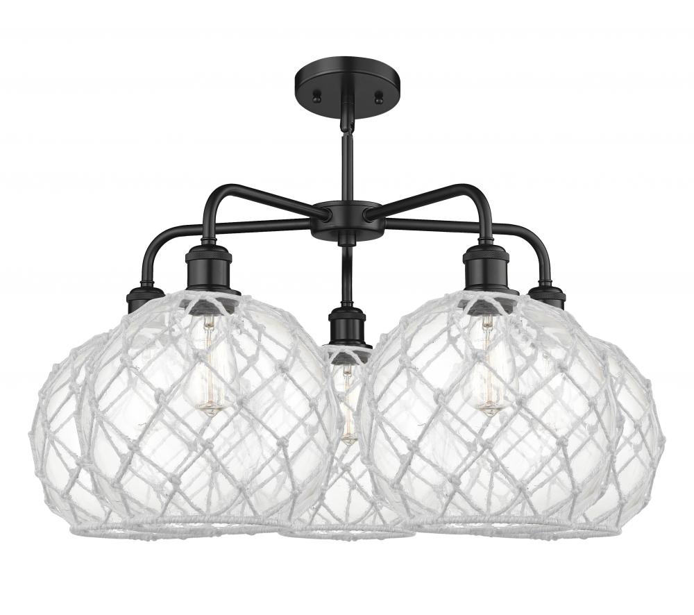 Farmhouse Rope - 5 Light - 29 inch - Matte Black - Clear Glass with White Rope shade - Stem hung - Chandelier