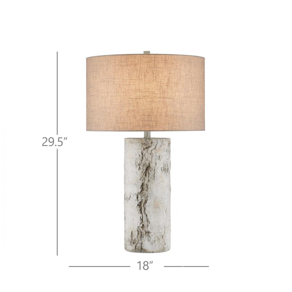 Though the profile of the Faux Birch Table Lamp looks as if it could have been sawed from a tree trunk, it is an artisanal creation made of concrete The illusion of wood comes from the hand-painted finish in a mix of birch white and gray hues, the dark patterning raised as it would be on a real tree.