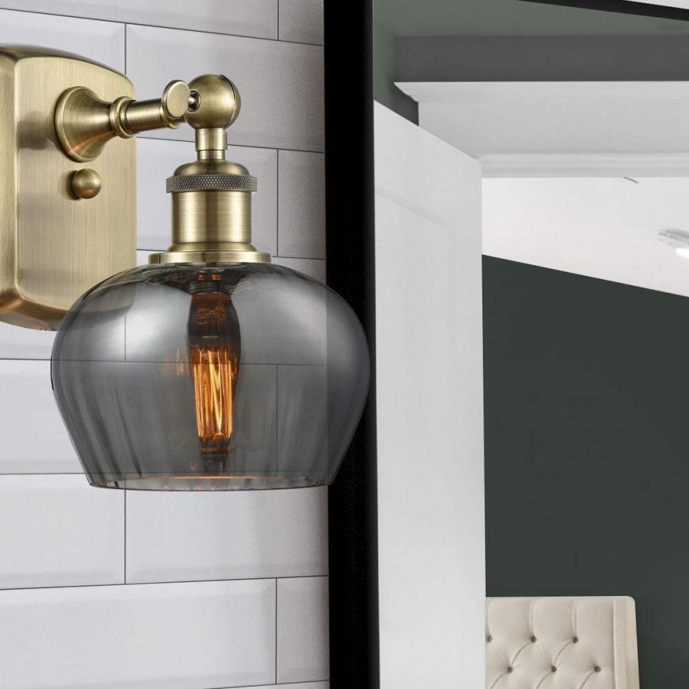Fenton - 1 Light - 7 inch - Antique Brass - Light Smoke Shade - Sconce