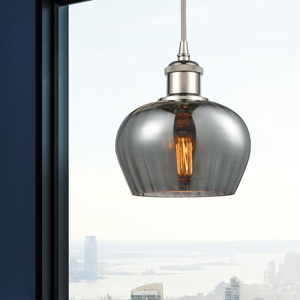 Fenton - 1 Light - 7 inch - Polished Nickel - Light Smoke Shade - Cord hung - Mini Pendant