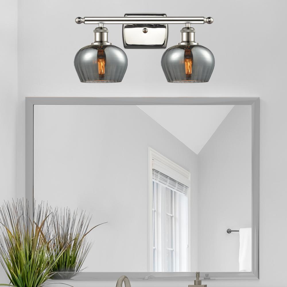 Fenton - 2 Light - 17 inch - Polished Nickel - Light Smoke Shade - Bath Vanity Light