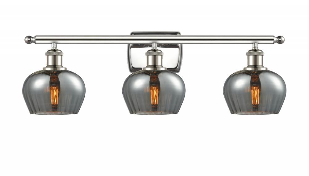 Fenton - 3 Light - 27 inch - Polished Nickel - Light Smoke Shade - Bath Vanity Light