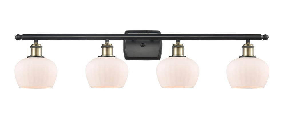 Fenton - 4 Light - 37 inch - Black Antique Brass - Matte White Shade - Bath Vanity Light