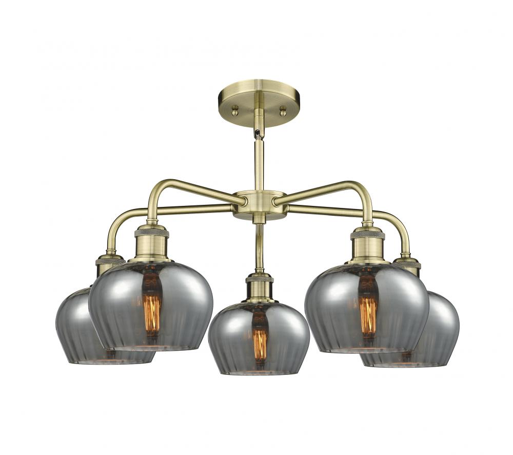 Fenton - 5 Light - 25 inch - Antique Brass - Light Smoke Shade - Chandelier