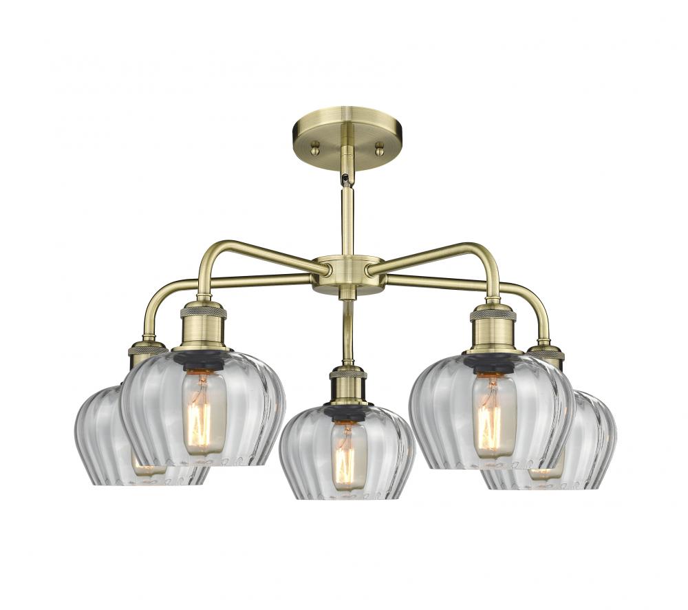 Fenton - 5 Light - 25 inch - Antique Brass - Clear Shade - Chandelier