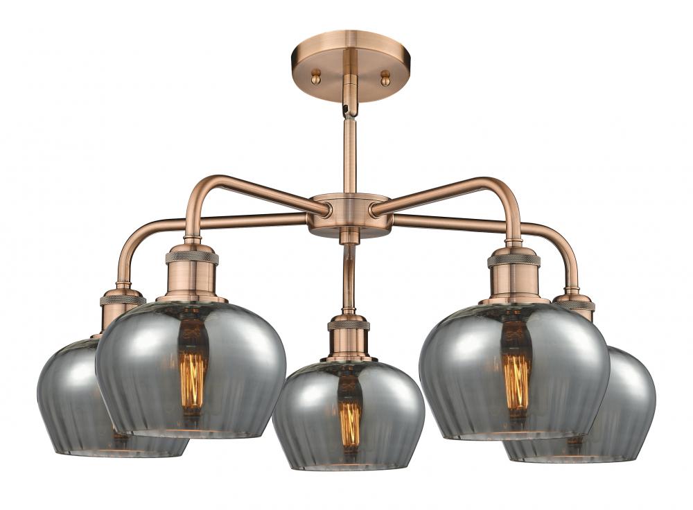 Fenton - 5 Light - 25 inch - Antique Copper - Light Smoke Shade - Chandelier