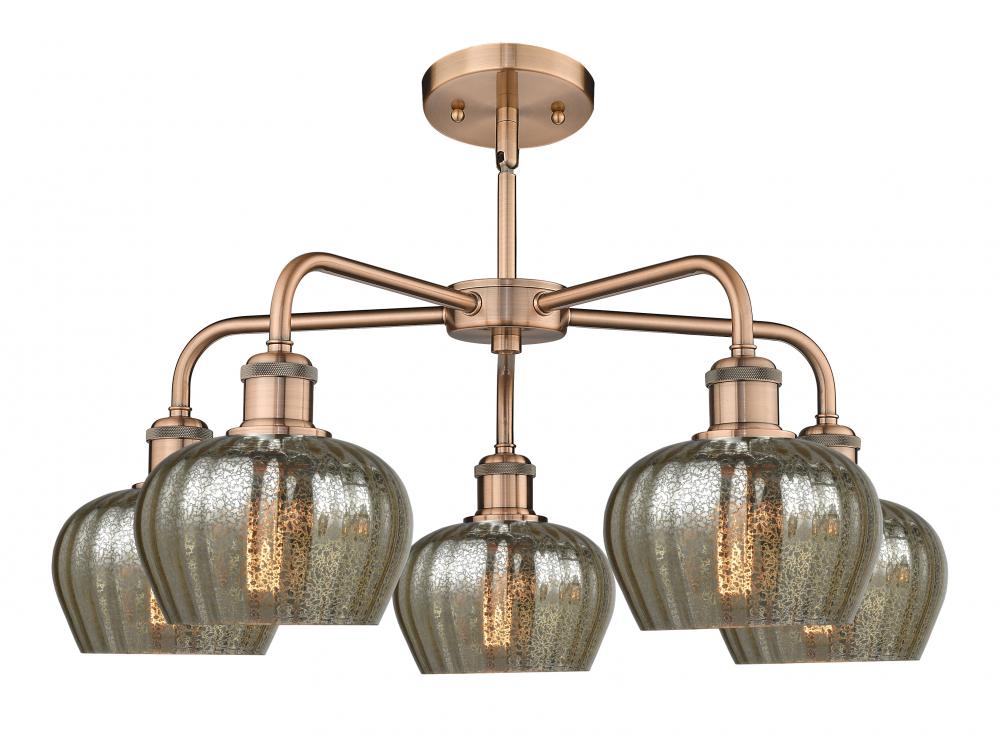 Fenton - 5 Light - 25 inch - Antique Copper - Mercury Shade - Chandelier