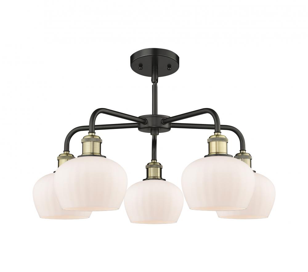 Fenton - 5 Light - 25 inch - Black Antique Brass - Matte White Shade - Chandelier