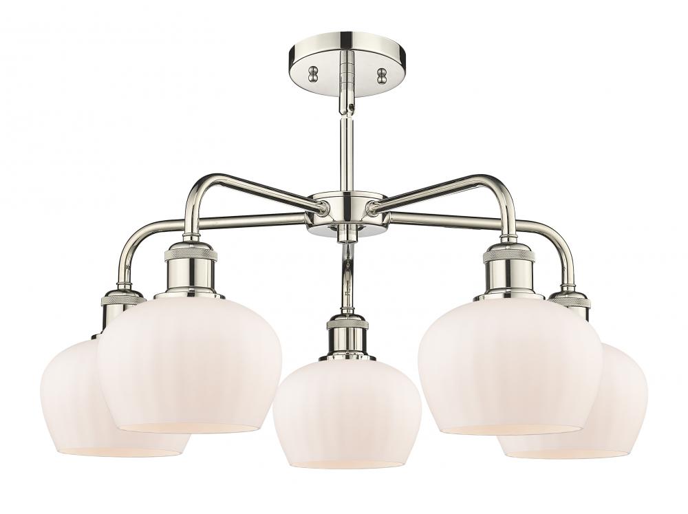 Fenton - 5 Light - 25 inch - Polished Nickel - Matte White Shade - Chandelier