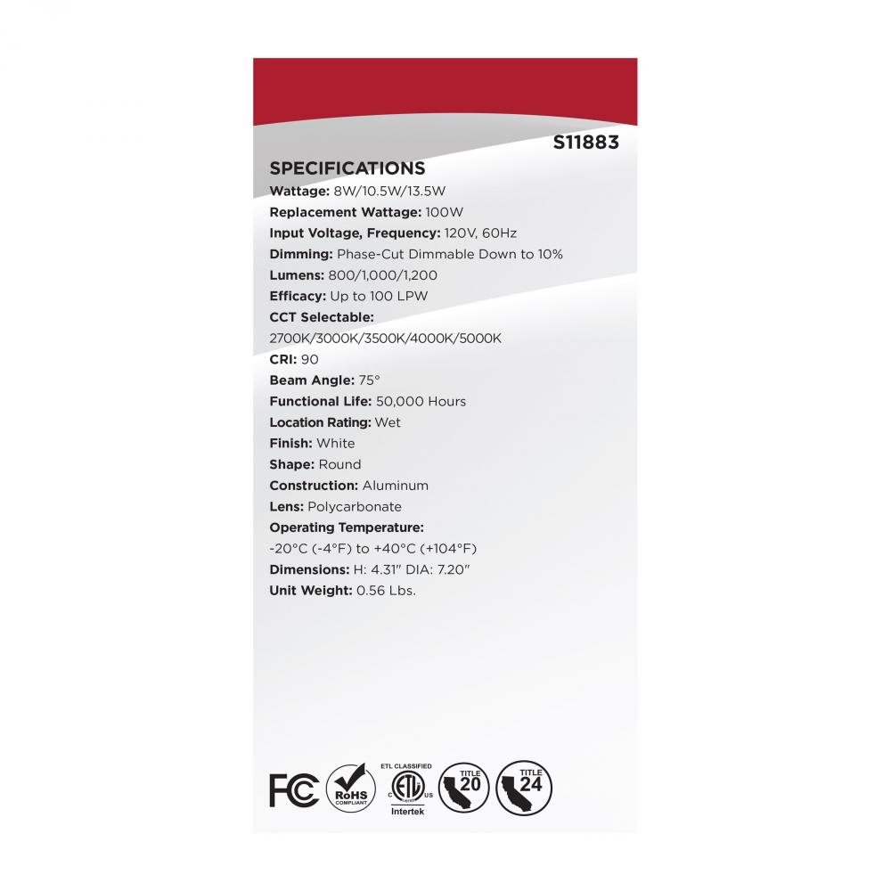 CCT and Wattage Selectable