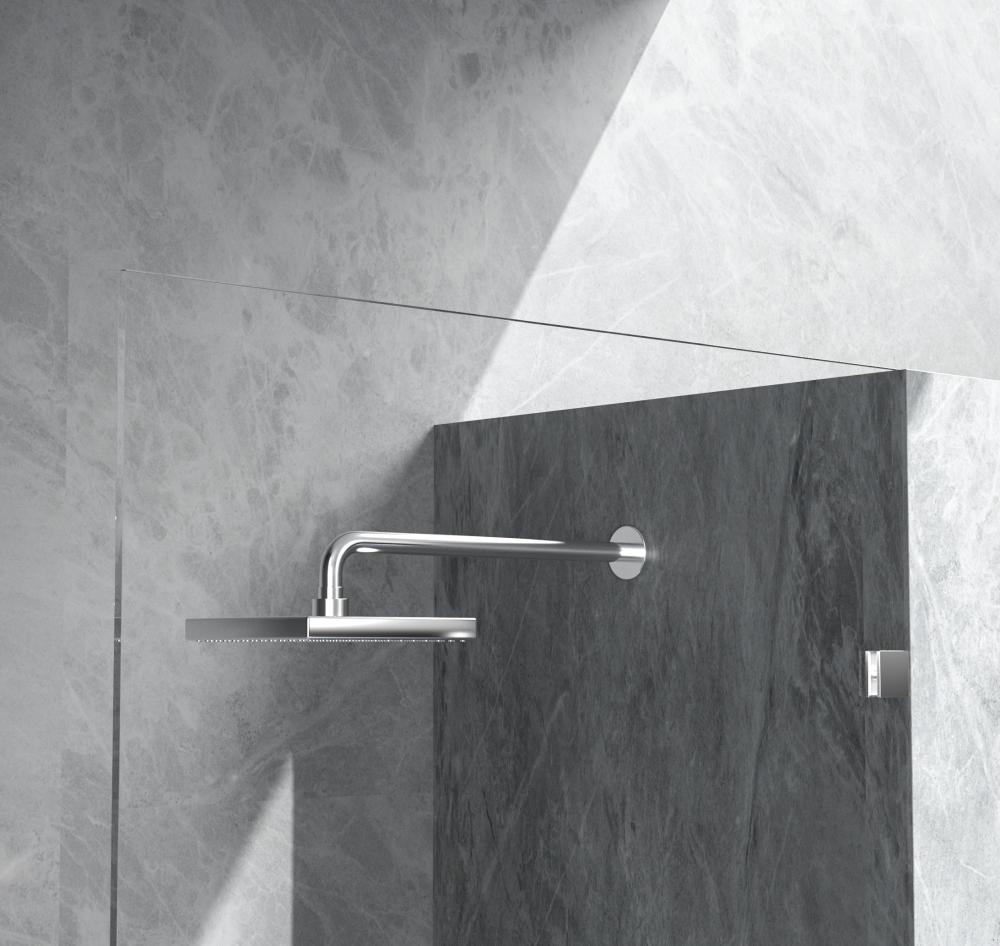 Fixed frameless door is a modern alternate to having a fully-enclosed shower area