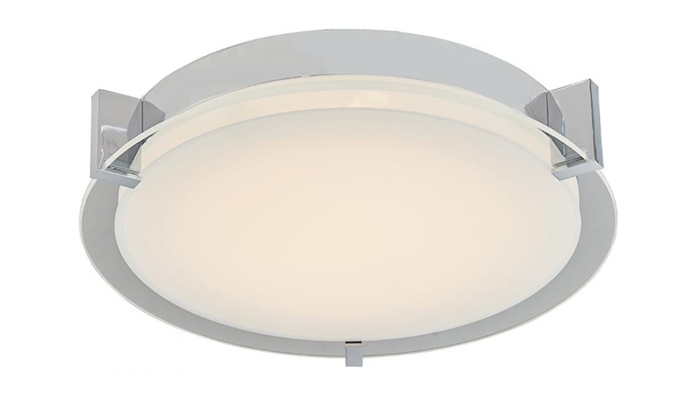 This versatile and subtle flush-mount series, available in a round or square form. With chrome or brushed nickel finishes and frosted glass diffuser provides great illumination for a variety of applications, bath hallways or closets, compliments the Matrix vanity wall series. Dimmable with most dimmers.