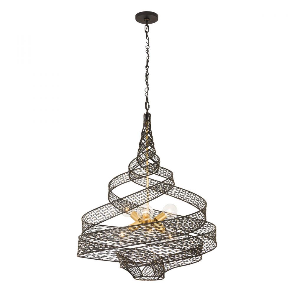 Flow 6-Lt Large Twist Pendant - Matte Black/French Gold