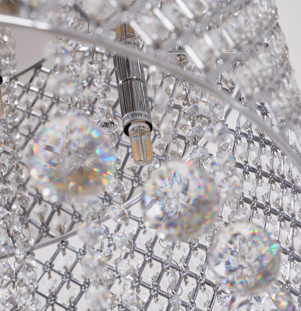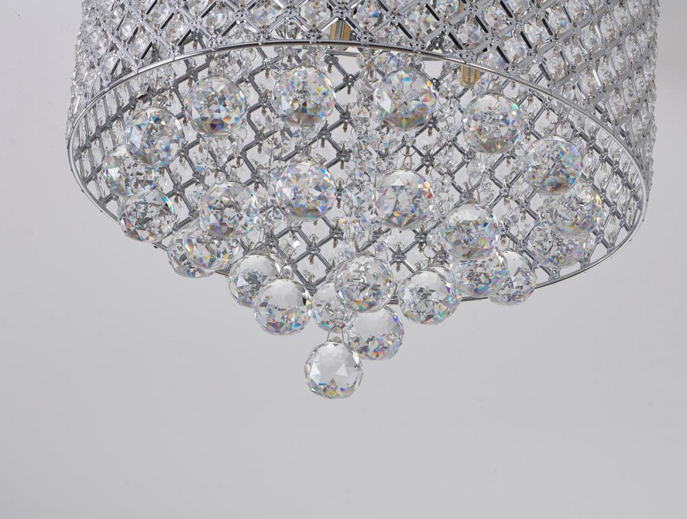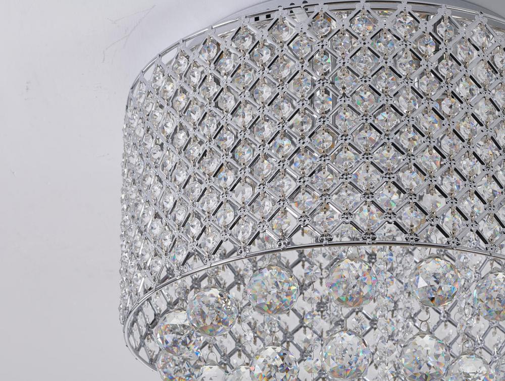 This exquisite flush mount is in a chrome finish. The frame is made out of metal, and it comes with a clear crystal beaded shade and clear crystal accents.