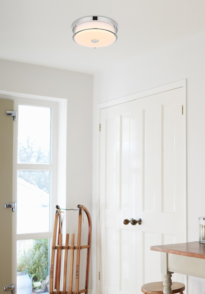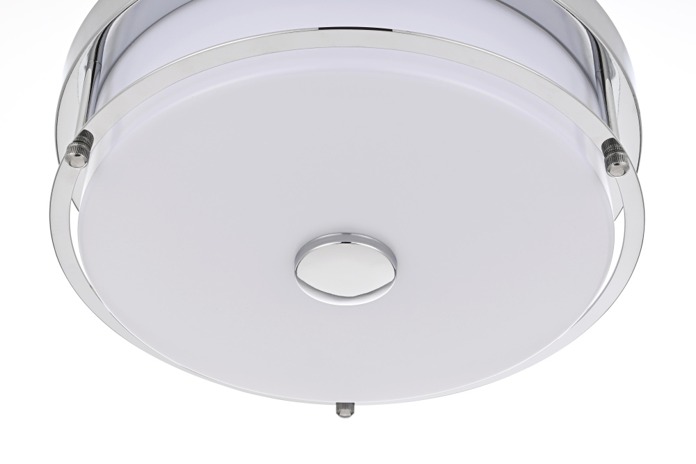 Elevate your space with this architecturally inspired flush mount fixture that masterfully combines form and function. The sophisticated dual-tier design features a precisely engineered floating band that creates a captivating shadow line, adding depth and visual interest even when unlit. The substantial metal frame showcases expert craftsmanship through carefully detailed connections and precision-machined decorative hardware. The seamless acrylic diffuser ensures perfect light distribution while maintaining a clean, contemporary aesthetic. This versatile fixture is equally at home in modern or traditional settings, making it perfect for foyers, bathrooms, bedrooms, or hallways. The adjustable color temperature feature allows you to fine-tune the ambiance from warm and inviting to bright and energizing, while full dimming capability provides complete control over light levels. Whether you're updating a single room or designing an entire home, this fixture delivers the perfect balance of sophisticated style and practical illumination.
