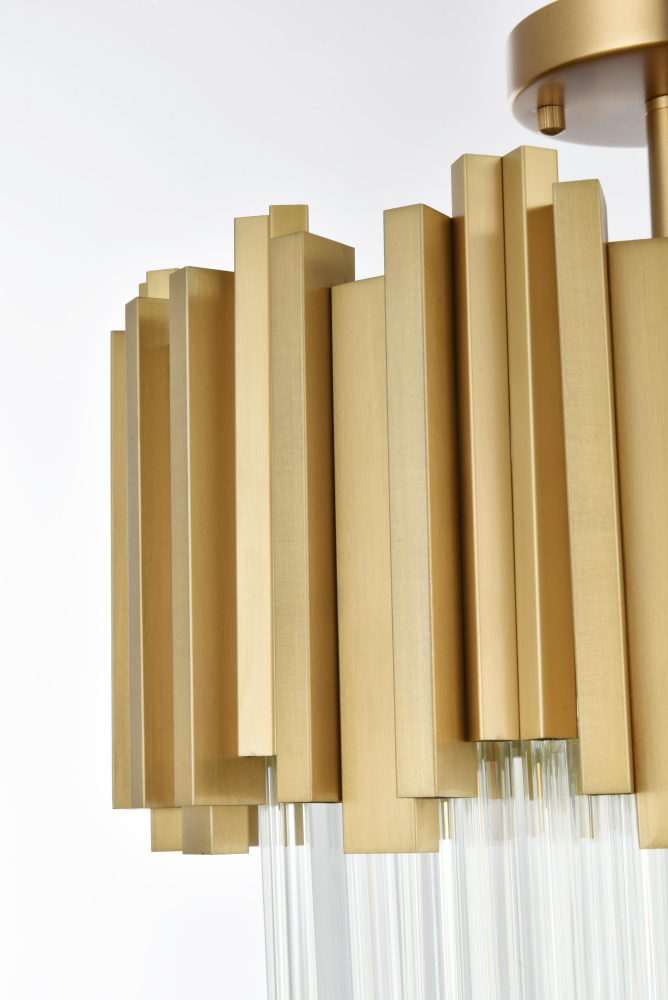 Transform your ceiling into a work of modern art with this flush mount chandelier, where bold geometry meets radiant brilliance. Crafted from durable iron and adorned with staggered clear glass pieces, this design creates a dynamic interplay of light and form. The staggered glass refracts light beautifully, casting mesmerizing patterns and filling the room with a soft, glowing ambiance. Ethereal and refined, the flush mount showcases a harmonious blend of sharp architectural edges and shimmering glass detail, creating a design that feels both structured and luminous. Fully dimmable, it lets you tailor the lighting to suit your mood—whether you need bright illumination or a cozy, intimate glow.Available in satin gold for a warm and luxurious finish, chrome for sleek, contemporary refinement, or black for bold, dramatic contrast, this flush mount chandelier complements any interior style. Perfect for spaces with lower ceilings, such as entryways, bedrooms, or living rooms, it delivers a bold design statement thout overwhelming the room. Complete with a matching canopy for a seamless look, this flush mount is as functional as it is captivating. Let it redefine your space with its radiant charm and dynamic beauty.