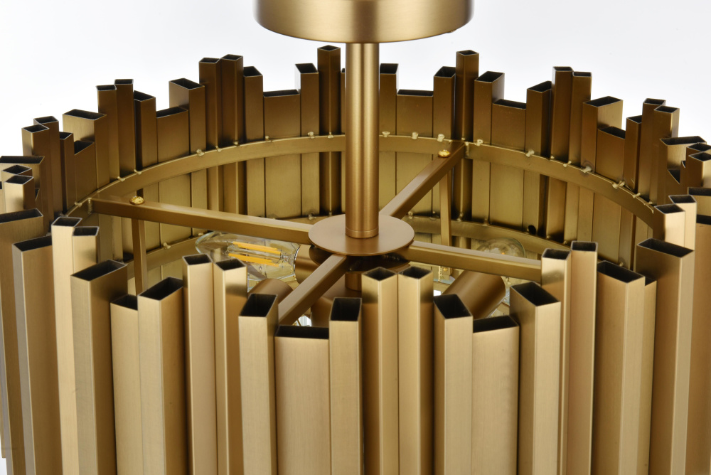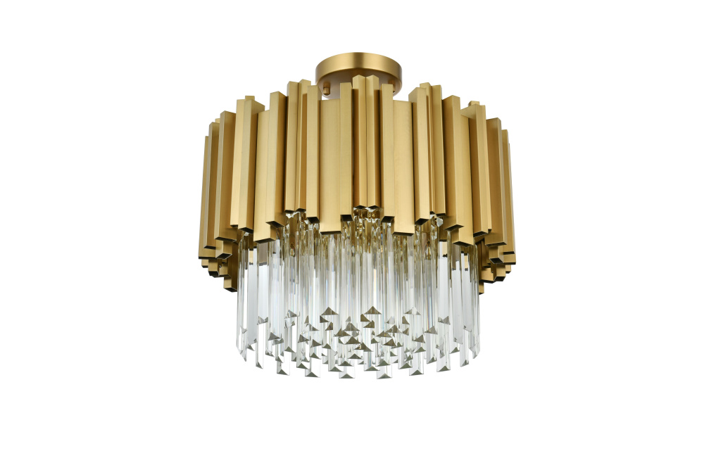 Transform your ceiling into a work of modern art with this flush mount chandelier, where bold geometry meets radiant brilliance.