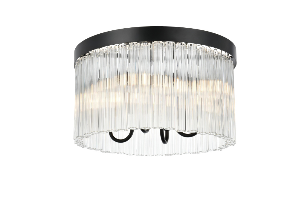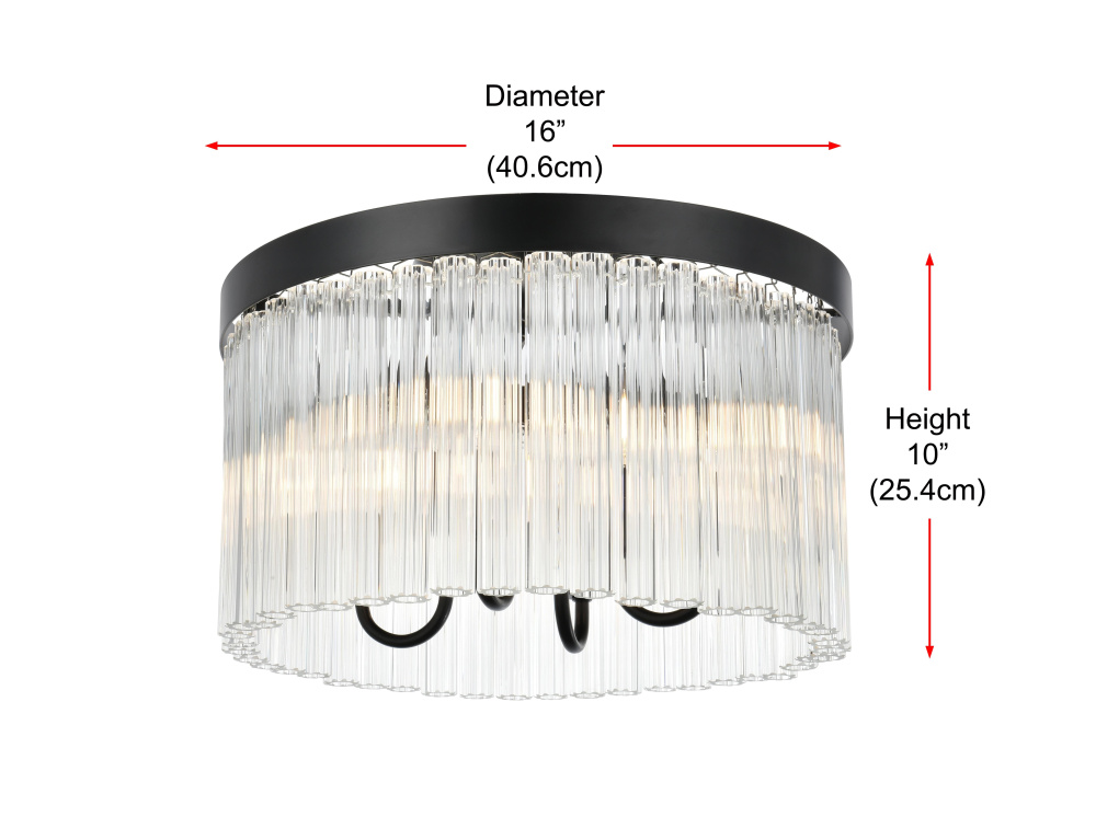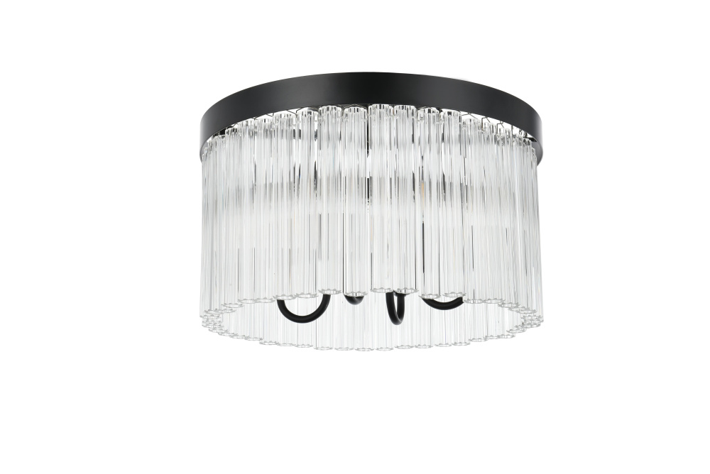 Bring brilliance to your space with this single-tier flush mount light, designed to combine low-profile functionality with stunning aesthetics. Crafted from durable iron and adorned with clear ribbed glass, this fixture refracts light into a mesmerizing display, transforming any room into a radiant haven. Perfect for rooms with lower ceilings, such as hallways, bedrooms, or entryways, this flush mount is available in chrome for a sleek modern touch, black for bold contrast, or satin gold for a warm, inviting glow. Its compact design ensures practicality without sacrificing style, making it an ideal choice for spaces that deserve a touch of glamour. Light bulbs sold separately.