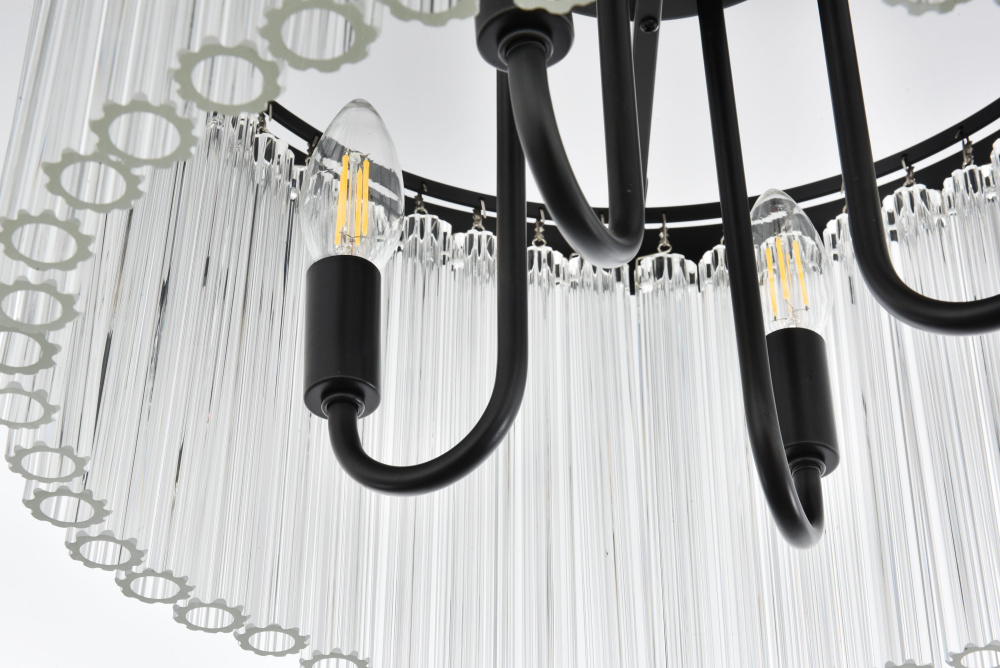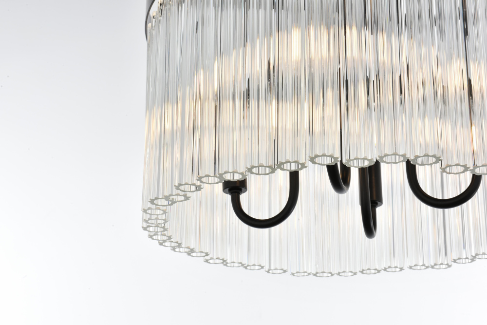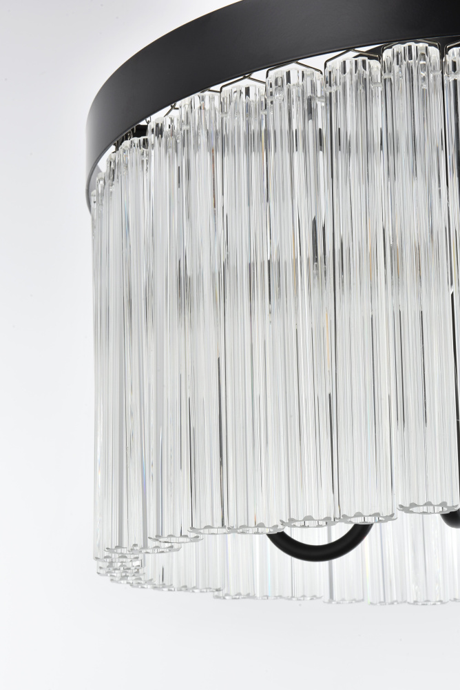 The single-tier flush mount version offers a sleek, low-profile design that brings the shimmering beauty of ribbed glass to rooms with lower ceilings.