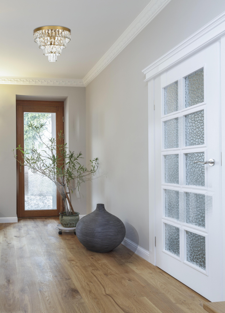 This flush mount design brings the drama of a chandelier closer to the ceiling.