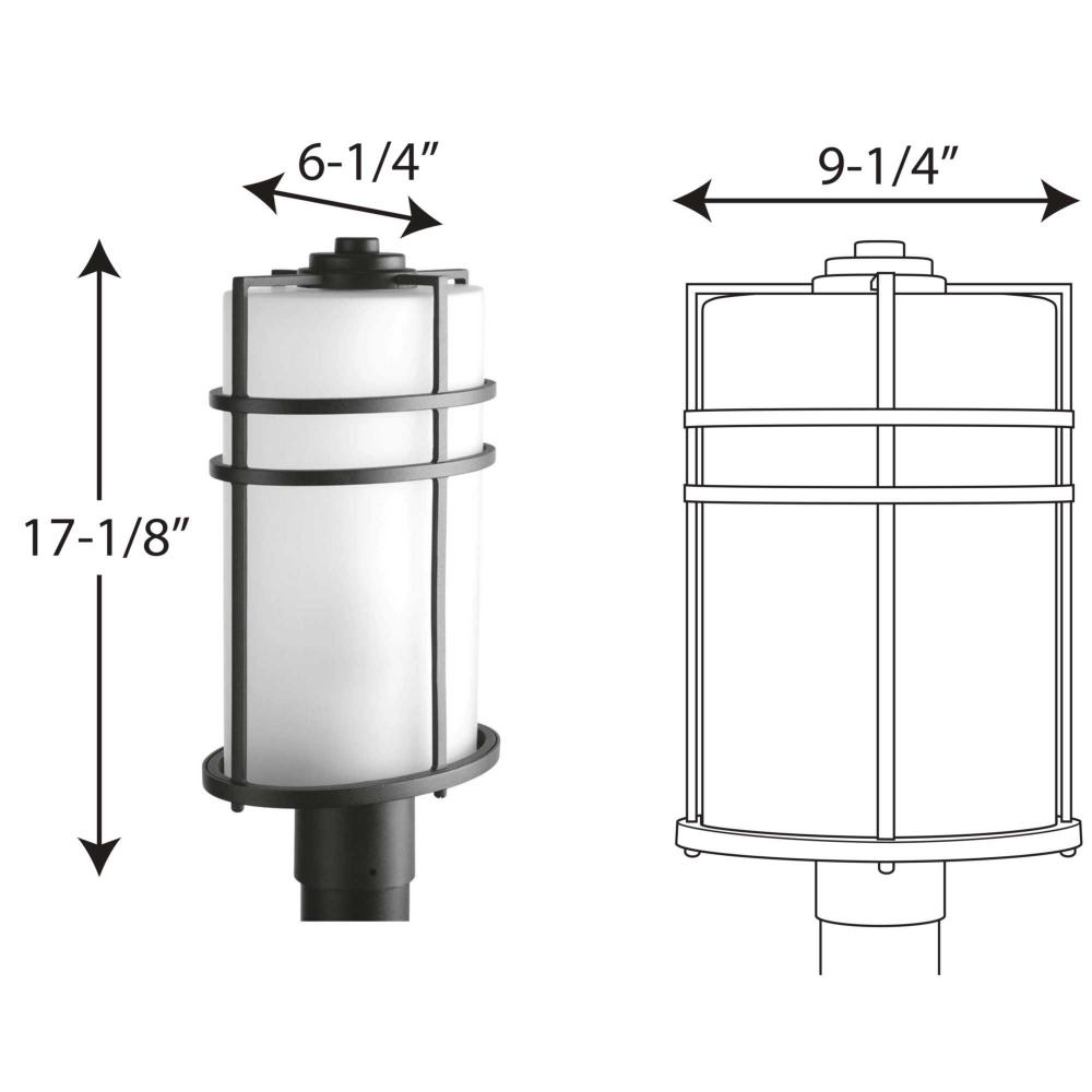 Inspired by the modern mission movement, the Format collection is comprised of an oval form factor with grid overlay. Etched glass shades and a Black finish complete the one-light post lantern. Design flexibly- can be used outdoors or in unexpected applications within interior settings.
