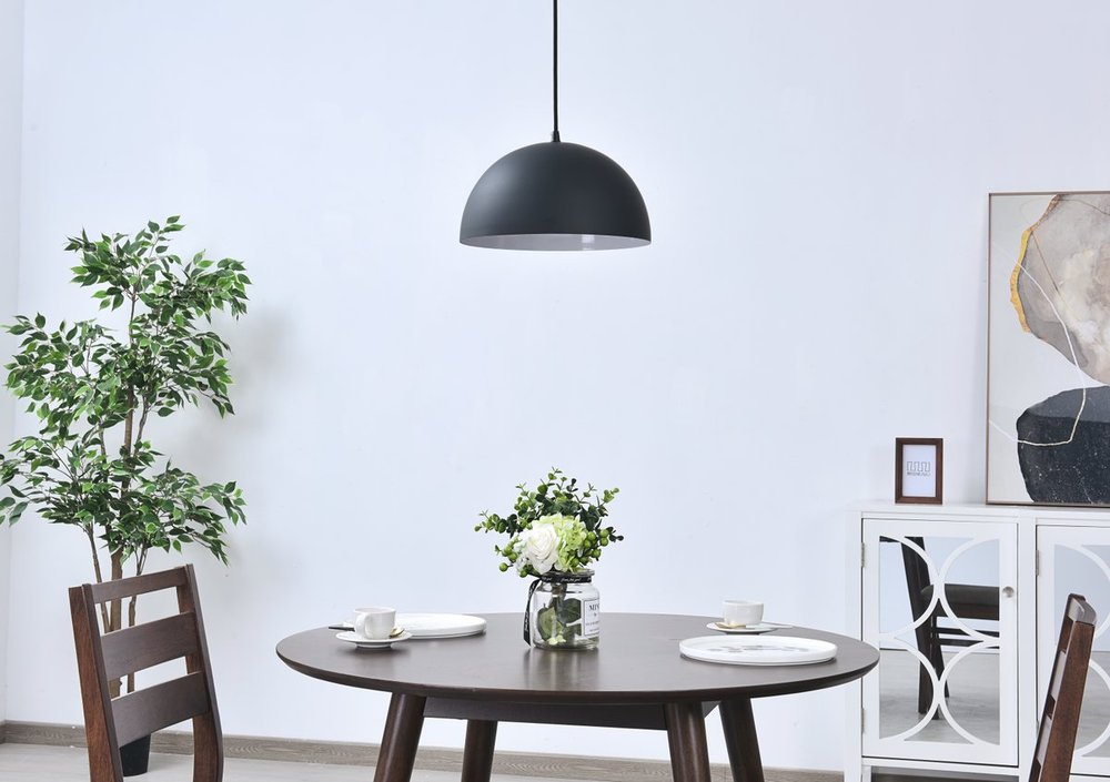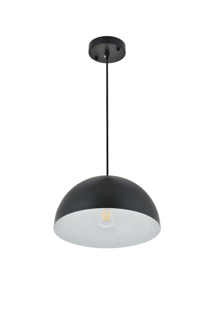 The Forte collection pendant lamp will surely create a modern and bold center point for any room. The hemispherical shade with a black finish exterior and white finish interior creates a dauntless personality that will illuminate any darkness with its reliable light. Without fail, Forte will excel at brightening your home, whether it's at your entryway, living room, or dining room.