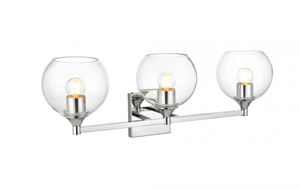 Defined by a sleek metal arm extends to suspend the clear pear-shaped glass shade. A contemporary stunner, it shows off the straight line details from the backplate and the streamline thick metal arm. Compatible with dimmers, so you'll have the right amount of light in any given time of the day. Completely versatile, you can place this wall light as an uplight or downlight. Rated for use in damp locations, this will work perfectly over a vanity in your bathroom.