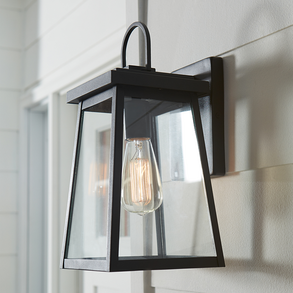 The Founders one light outdoor wall fixture in black creates a warm and inviting welcome presentation for your home's exterior.