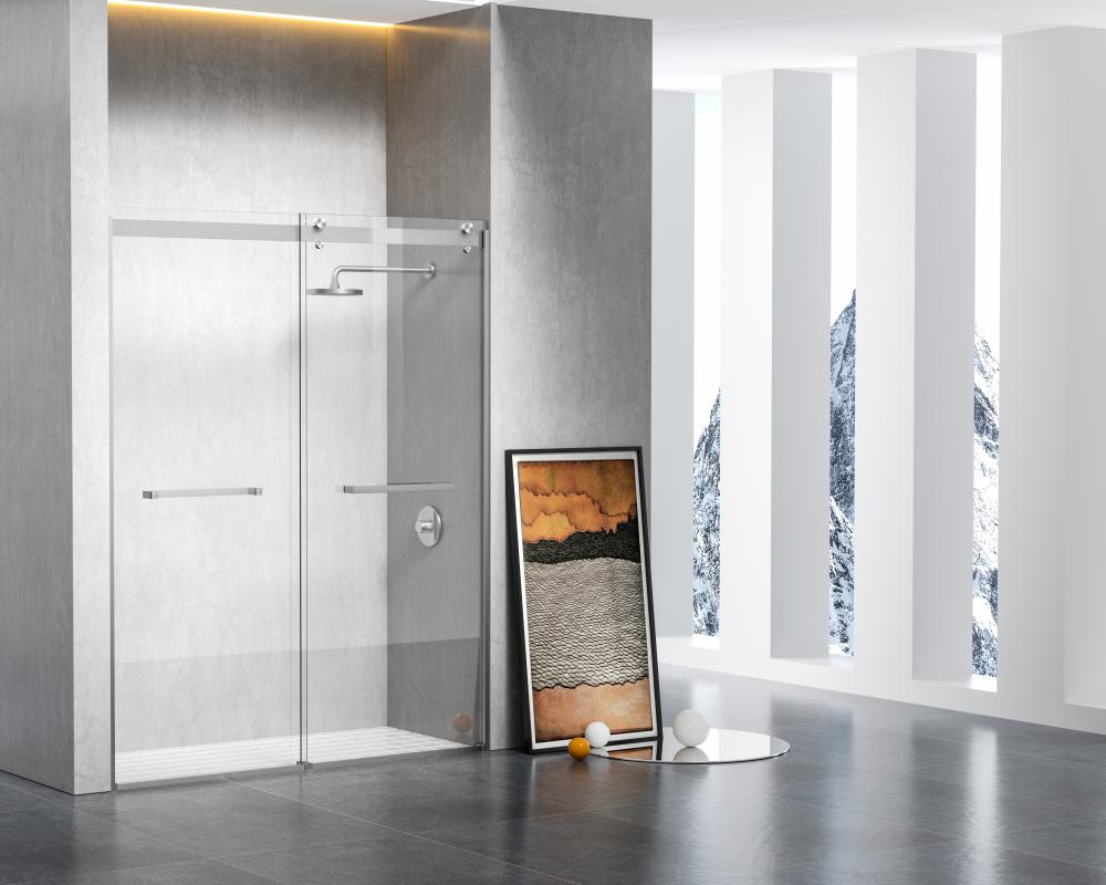 Transform your bathroom into a luxurious oasis with our stunning shower doors! Our doors are designed to offer both functionality and style, making your shower experience more enjoyable and comfortable. Crafted from high quality materials, our shower doors are not only durable but also easy to maintain, making them a practical and long lasting additional to any bathroom. We have four finishes available to choose from to help complement your bathroom décor and aesthetics. Frameless double sliding shower door with 54" - 60" width adjustment range, cut the rails to size. Full length shower door seal thresholds are included to prevent any leaks. Anti-jump mechanism included to ensure afe and smooth door operation.