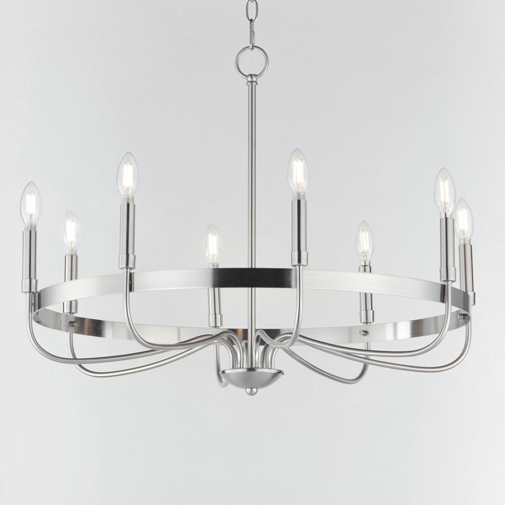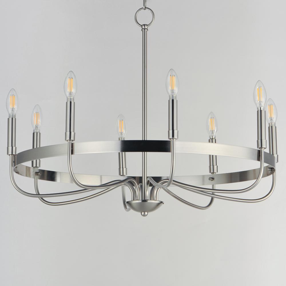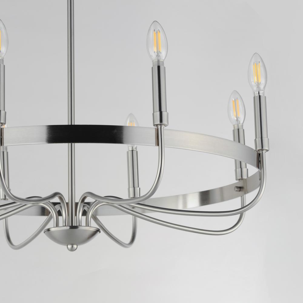 Elegant simple chandelier forms in your choice of Matte Black, Satin Nickel, or Heritage Brass. The timeless and transitional appeal of this series pairs well with a wide range of aesthetics.